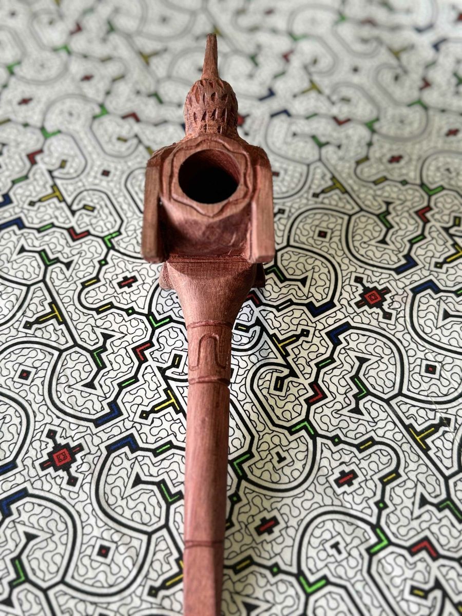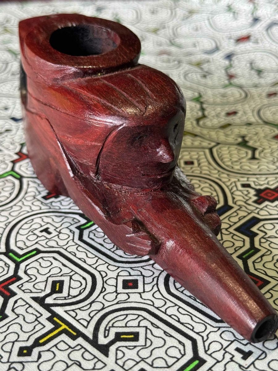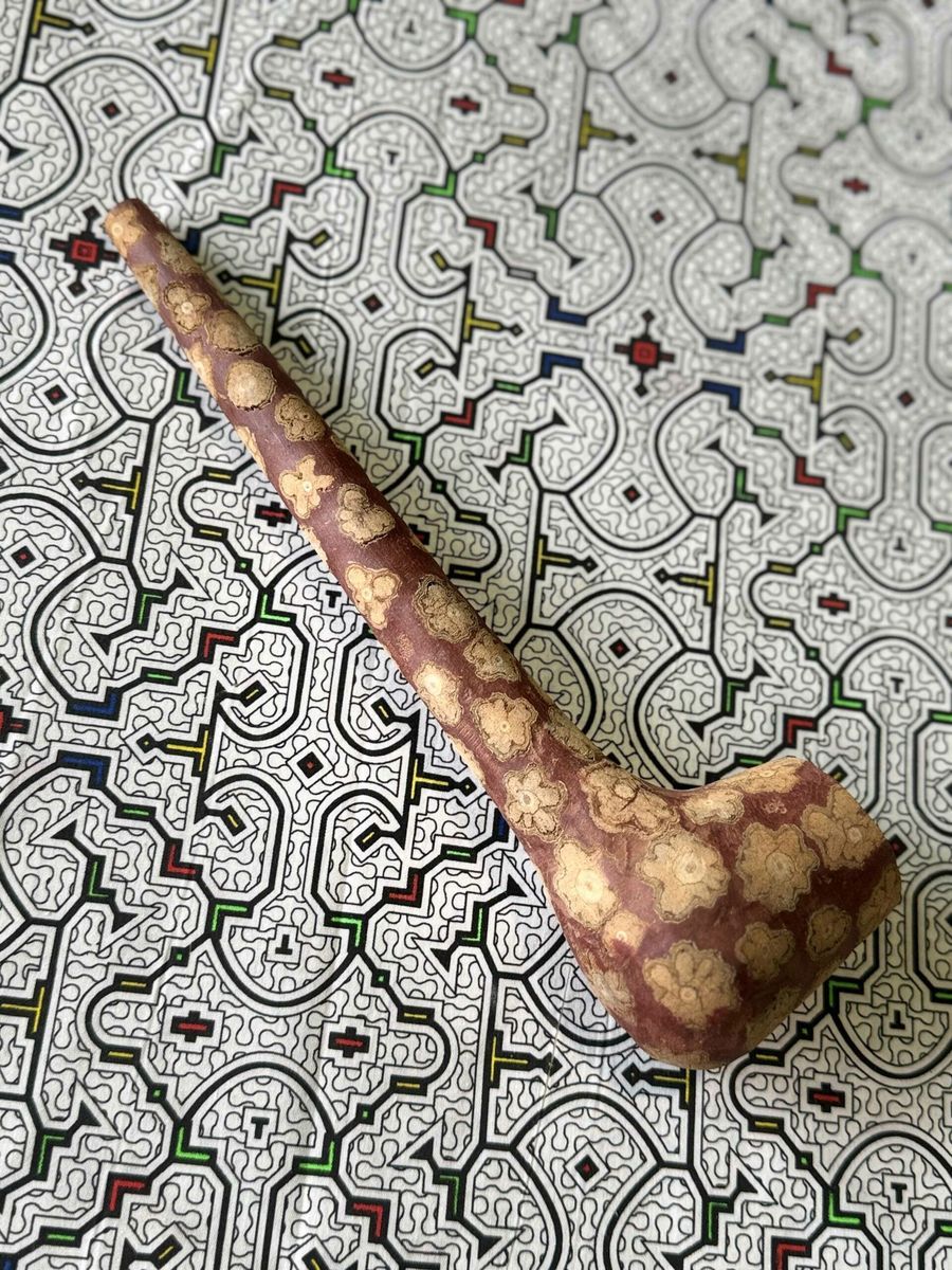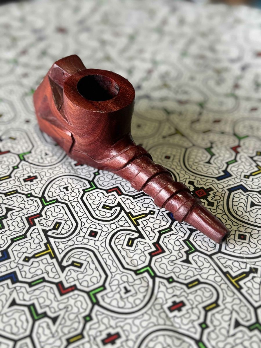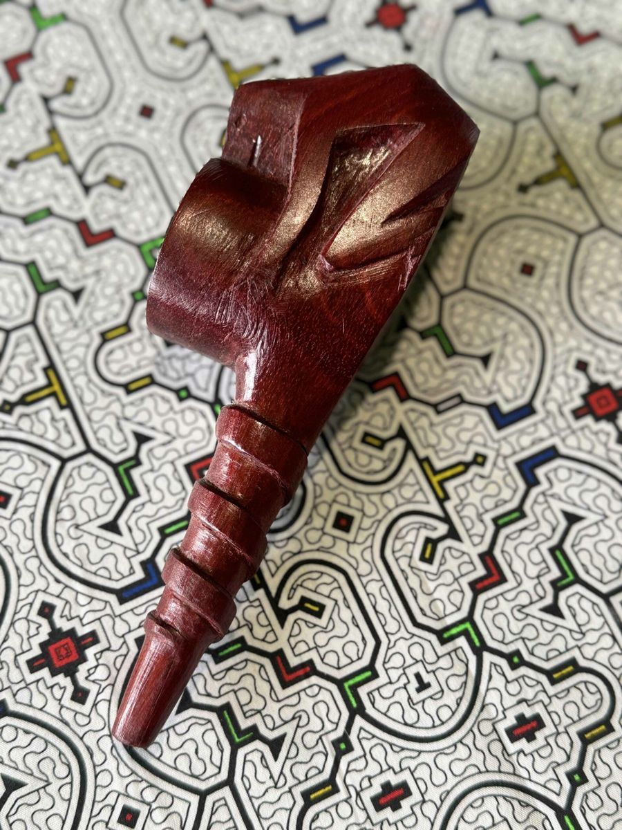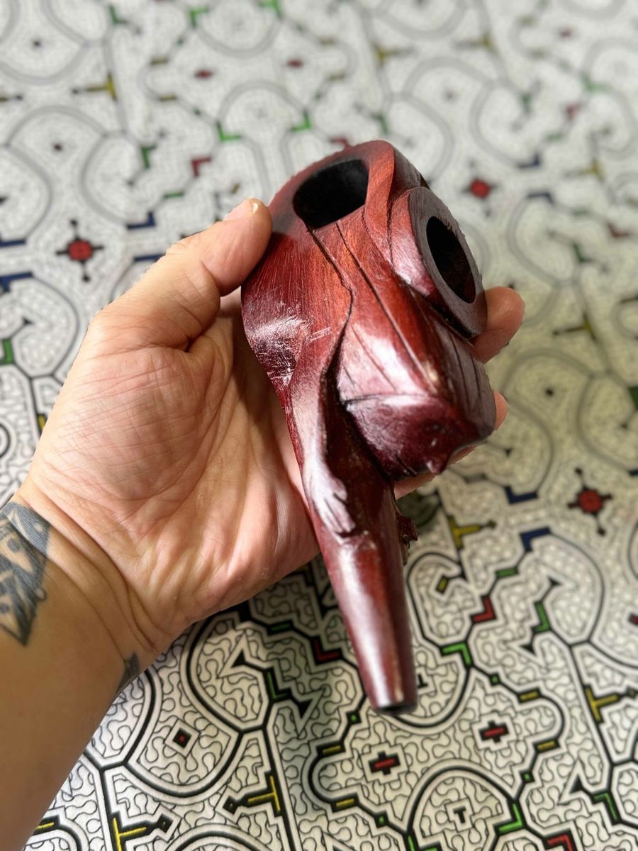 Ceremonial pipe handcrafted from red wood — designed for ritual Mapacho smoking. Each pipe is unique, made by experienced artisans. Red wood chosen for its durability and deep symbolic resonance — built for a lifetime of ceremonial use.