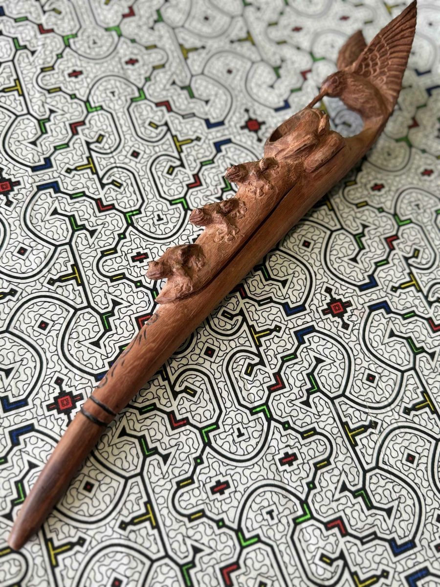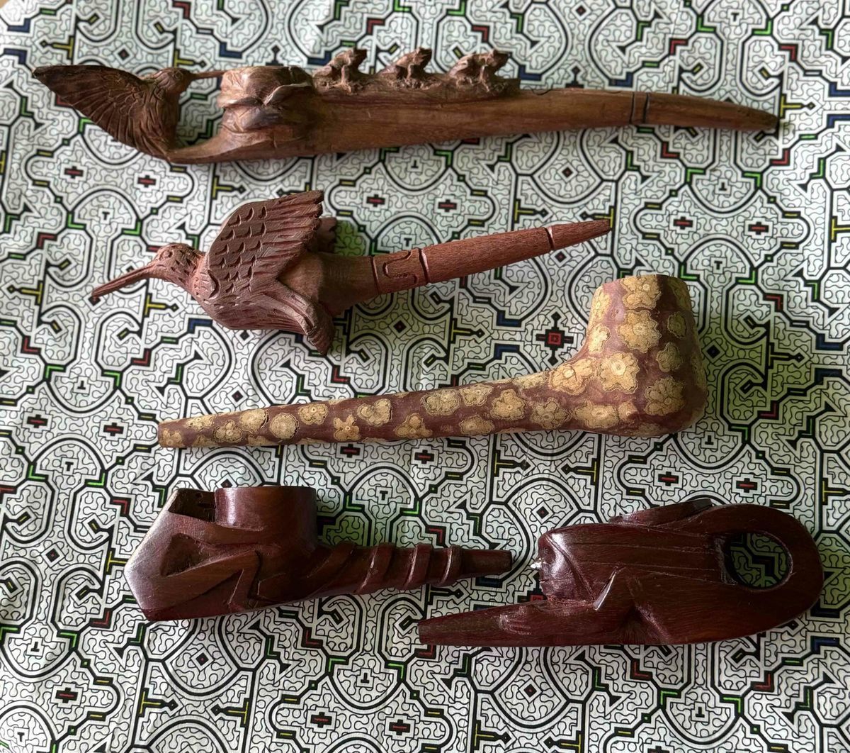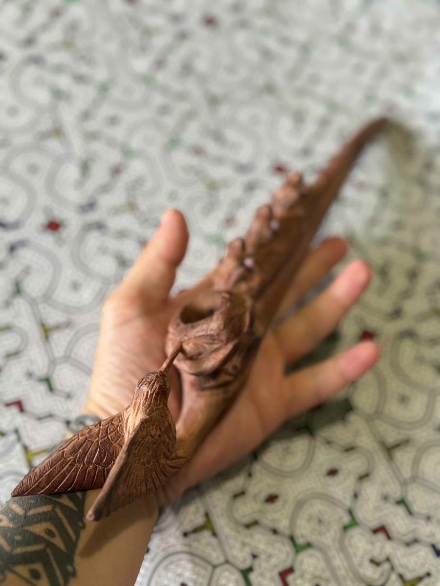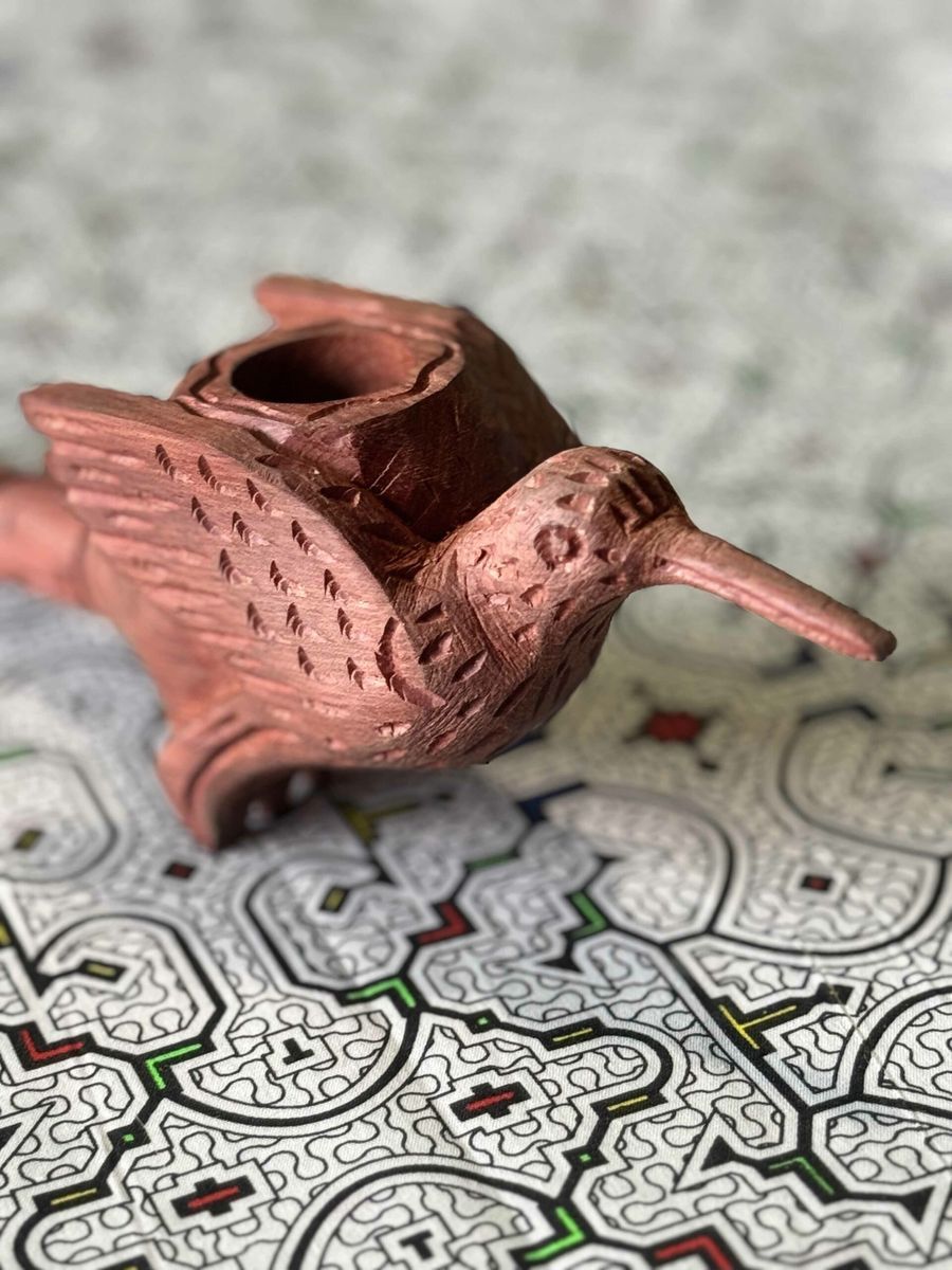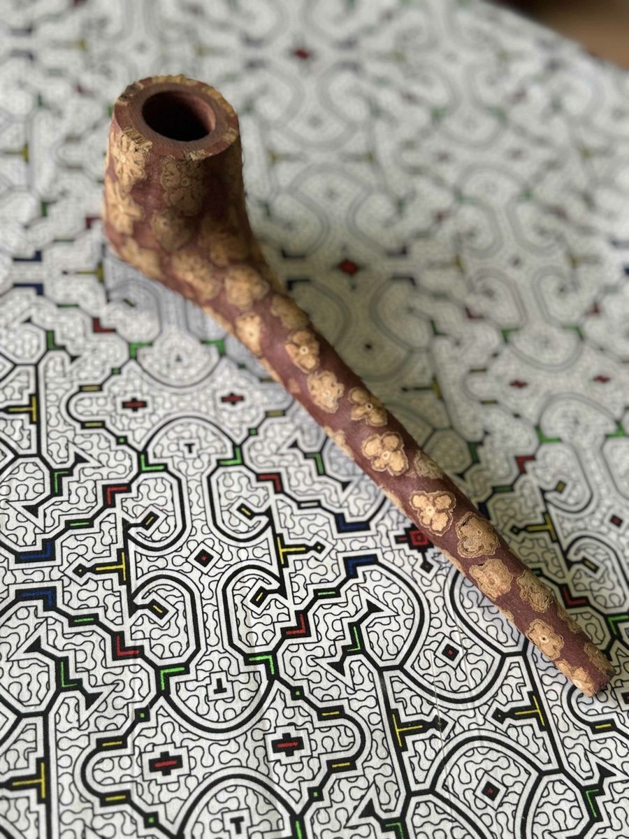 Ceremonial pipe handcrafted from red wood — designed for ritual Mapacho smoking. Each pipe is unique, made by experienced artisans. Red wood chosen for its durability and deep symbolic resonance — built for a lifetime of ceremonial use.